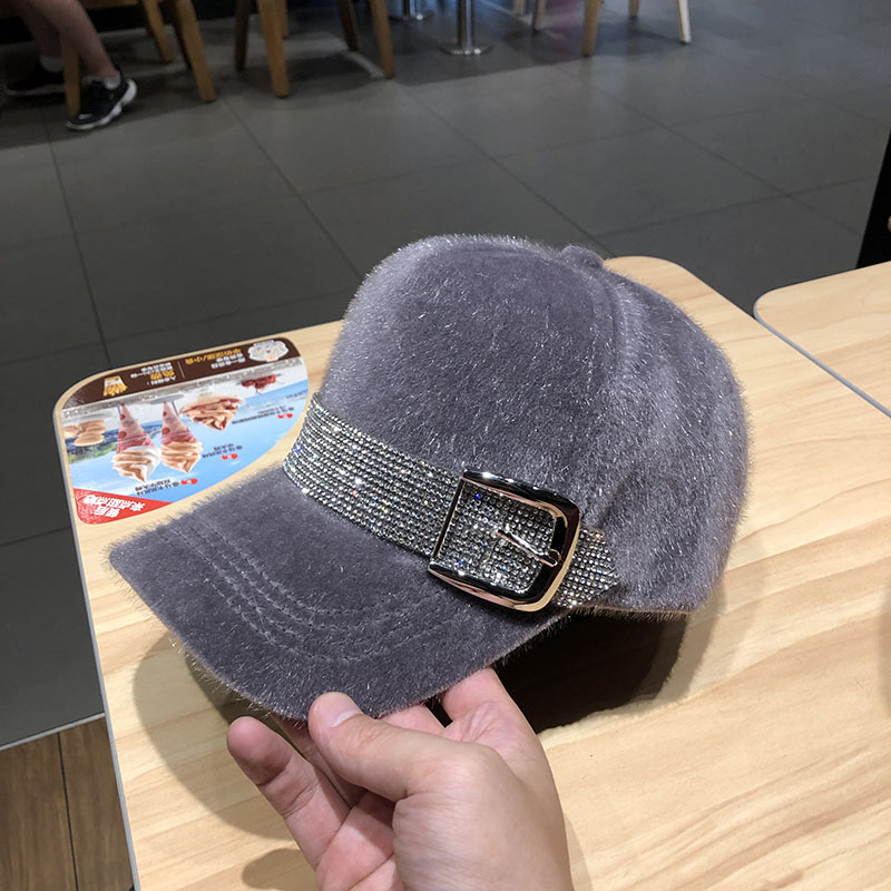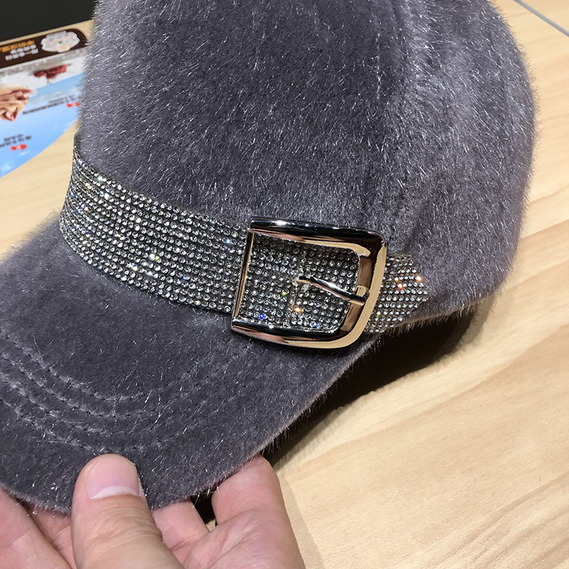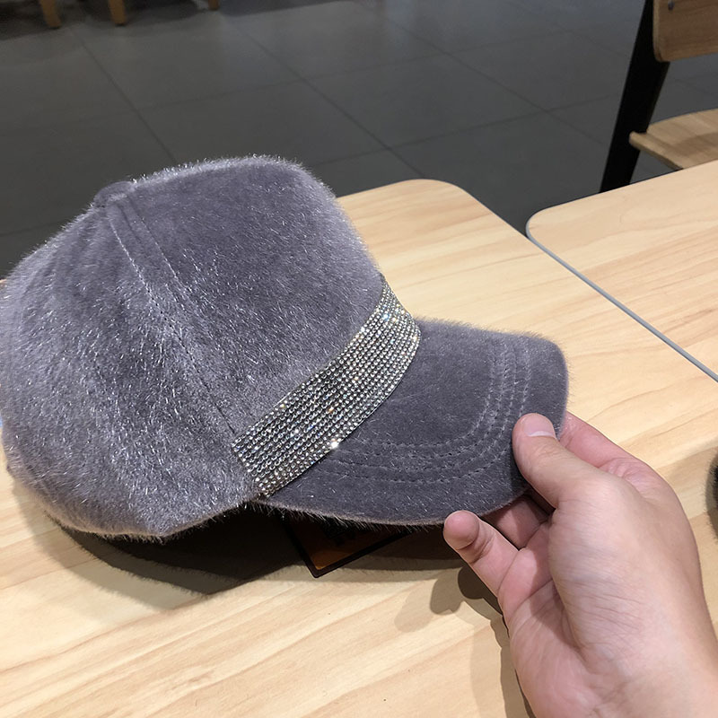 Korean Fashion Winter Warm All-Matching Diamond Baseball Cap