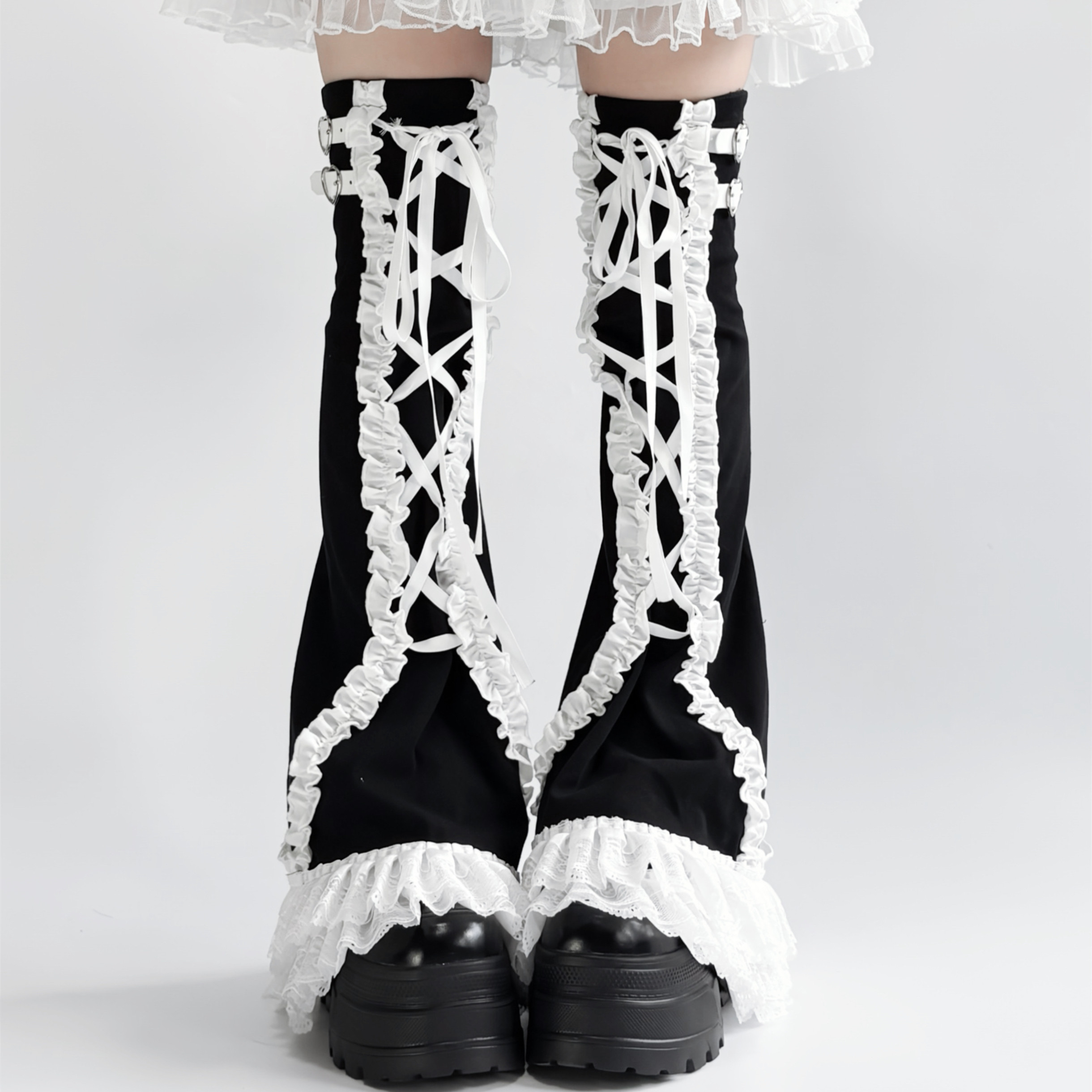 Versatile Lace Trim Over-the-Calf Slimming Socks