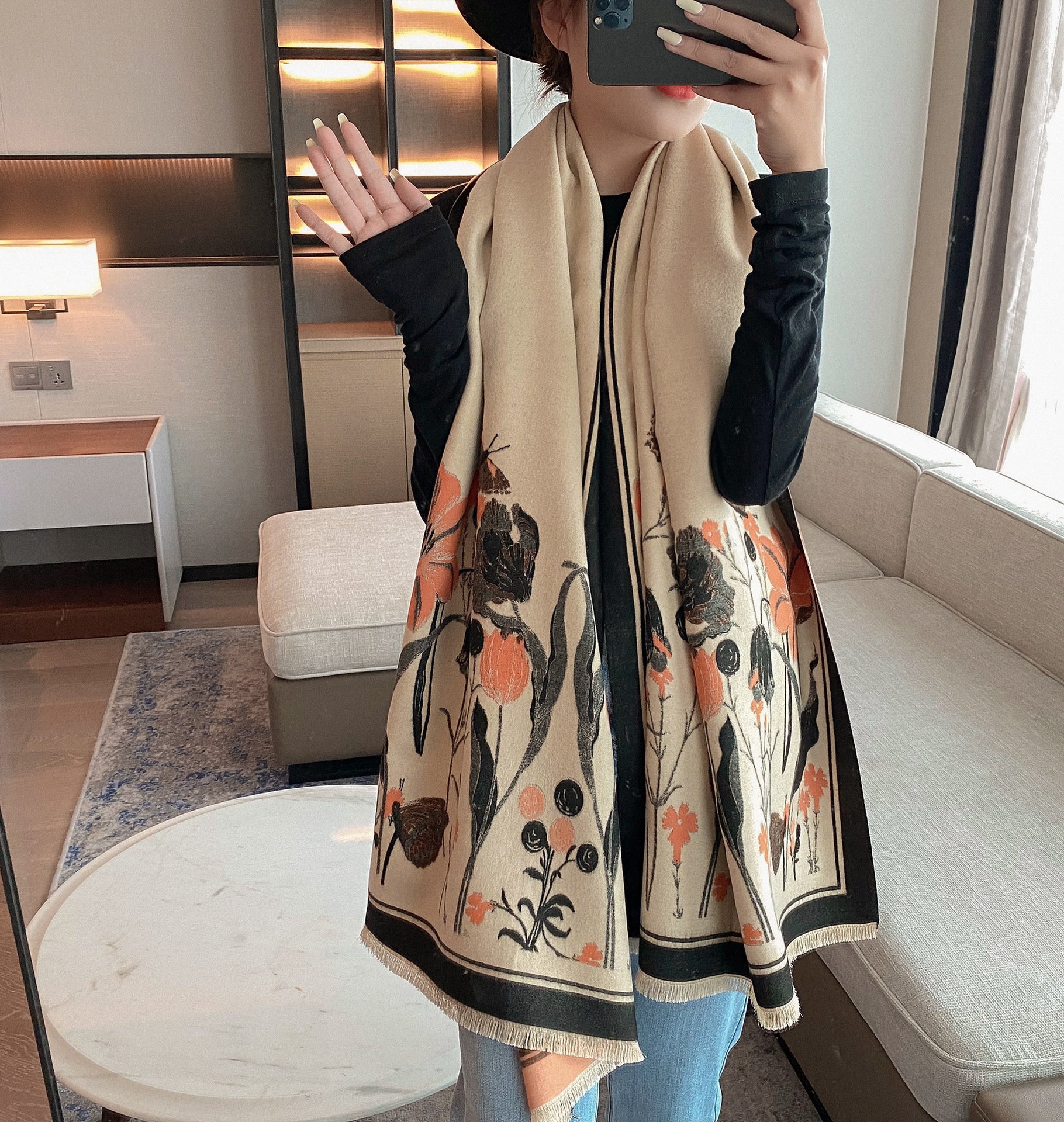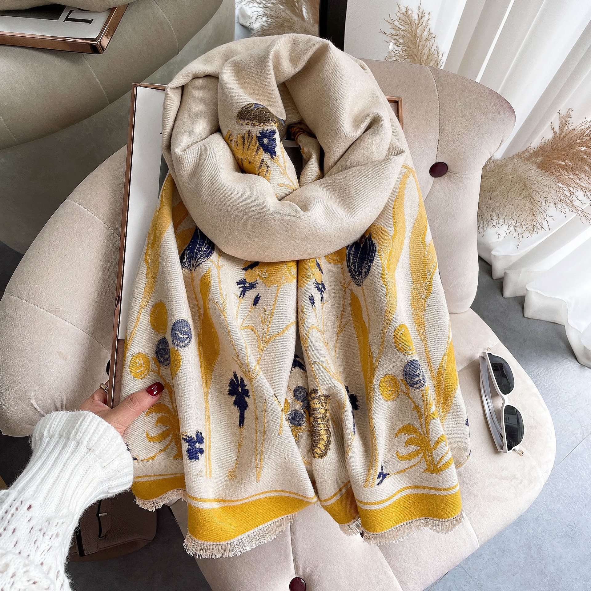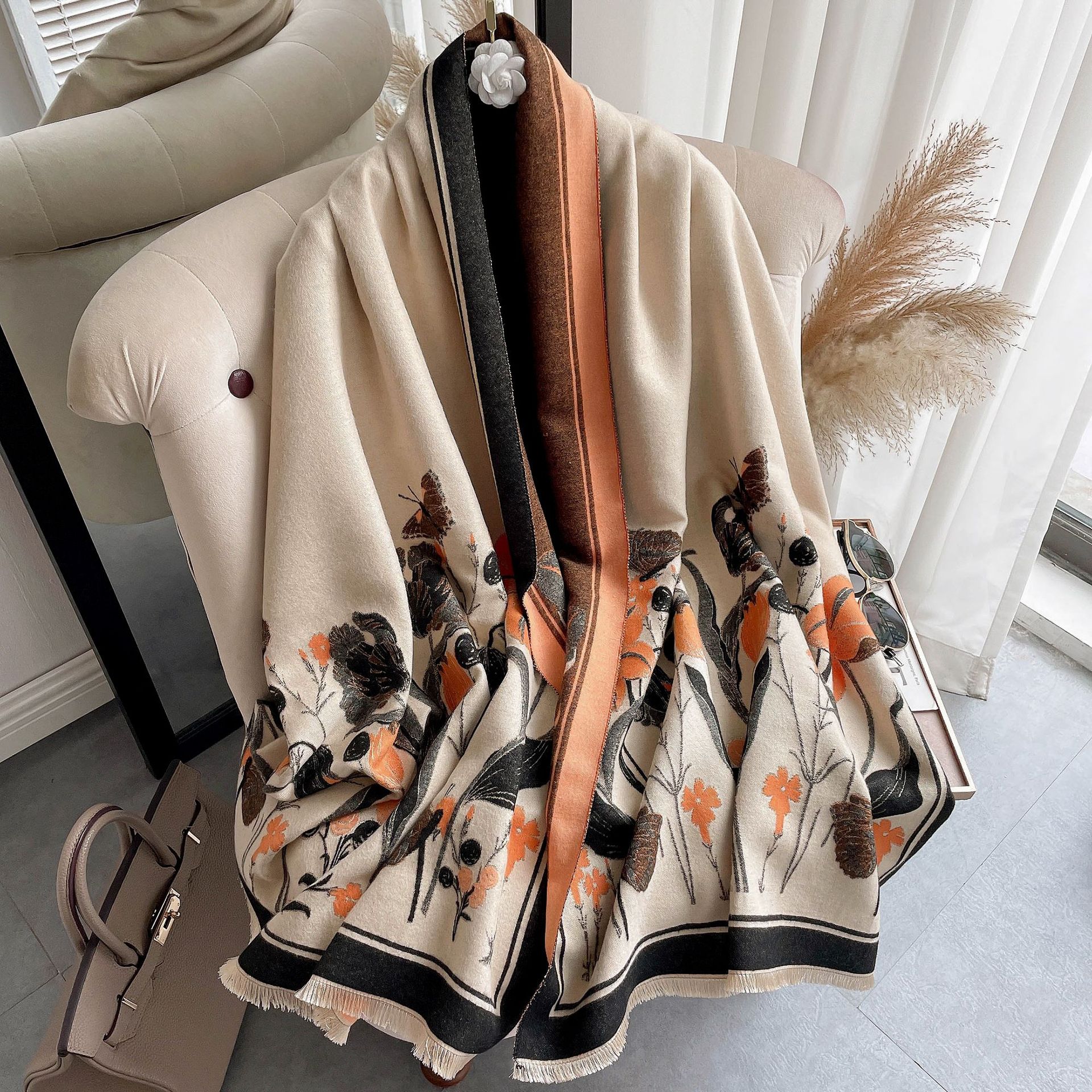 Winter Warm Cashmere Feel Floral Shawl & Wrap