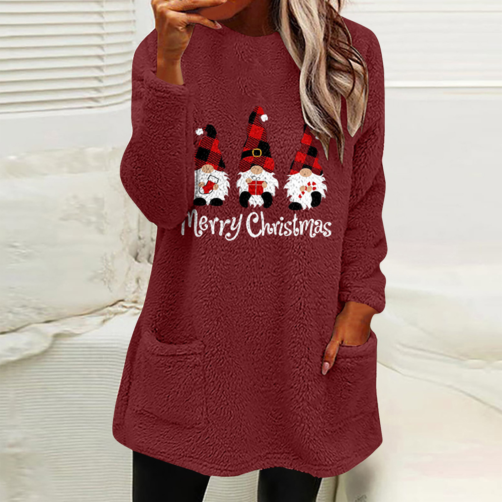 Women's Holiday Letter Graphic Long Sleeve Pocket Fleece Top