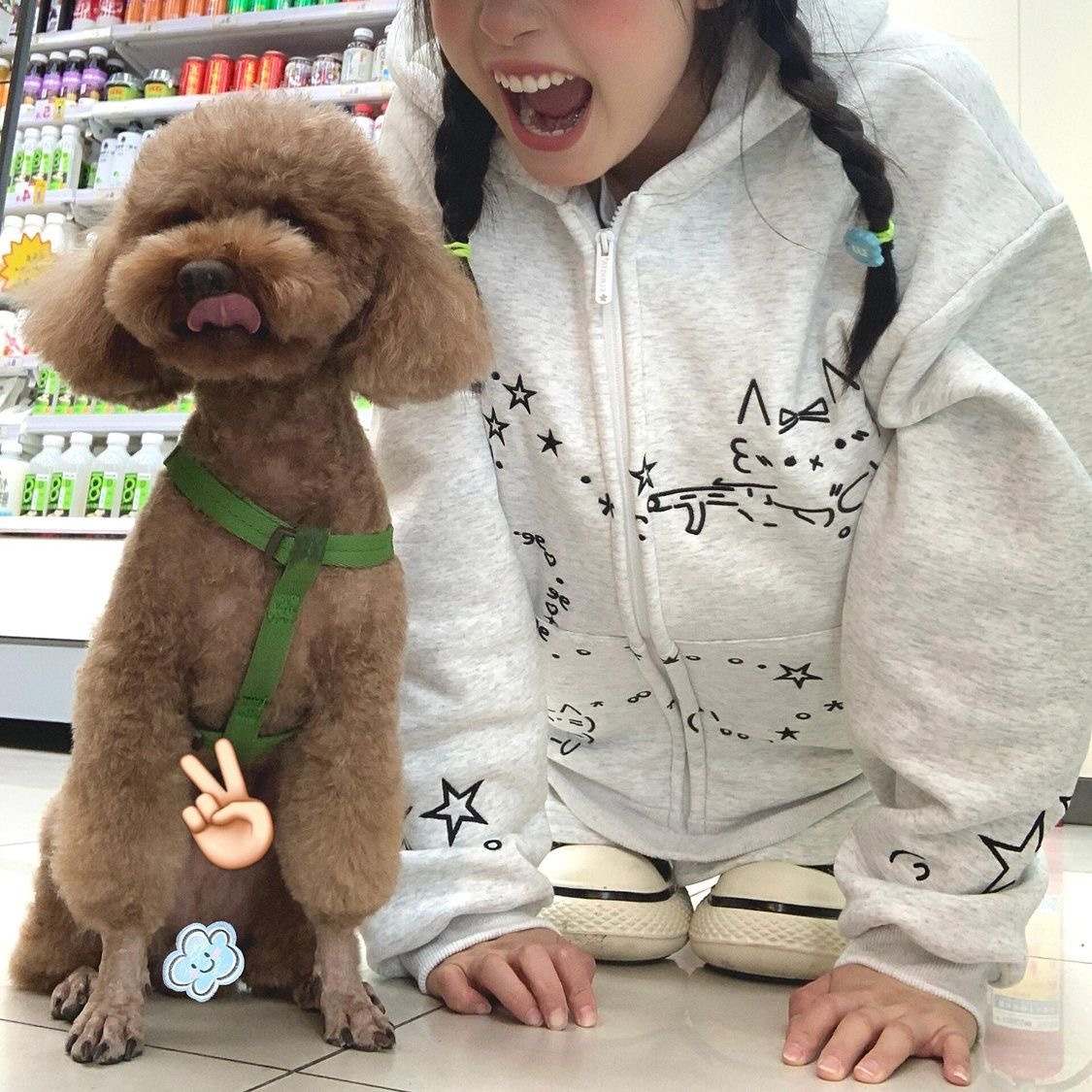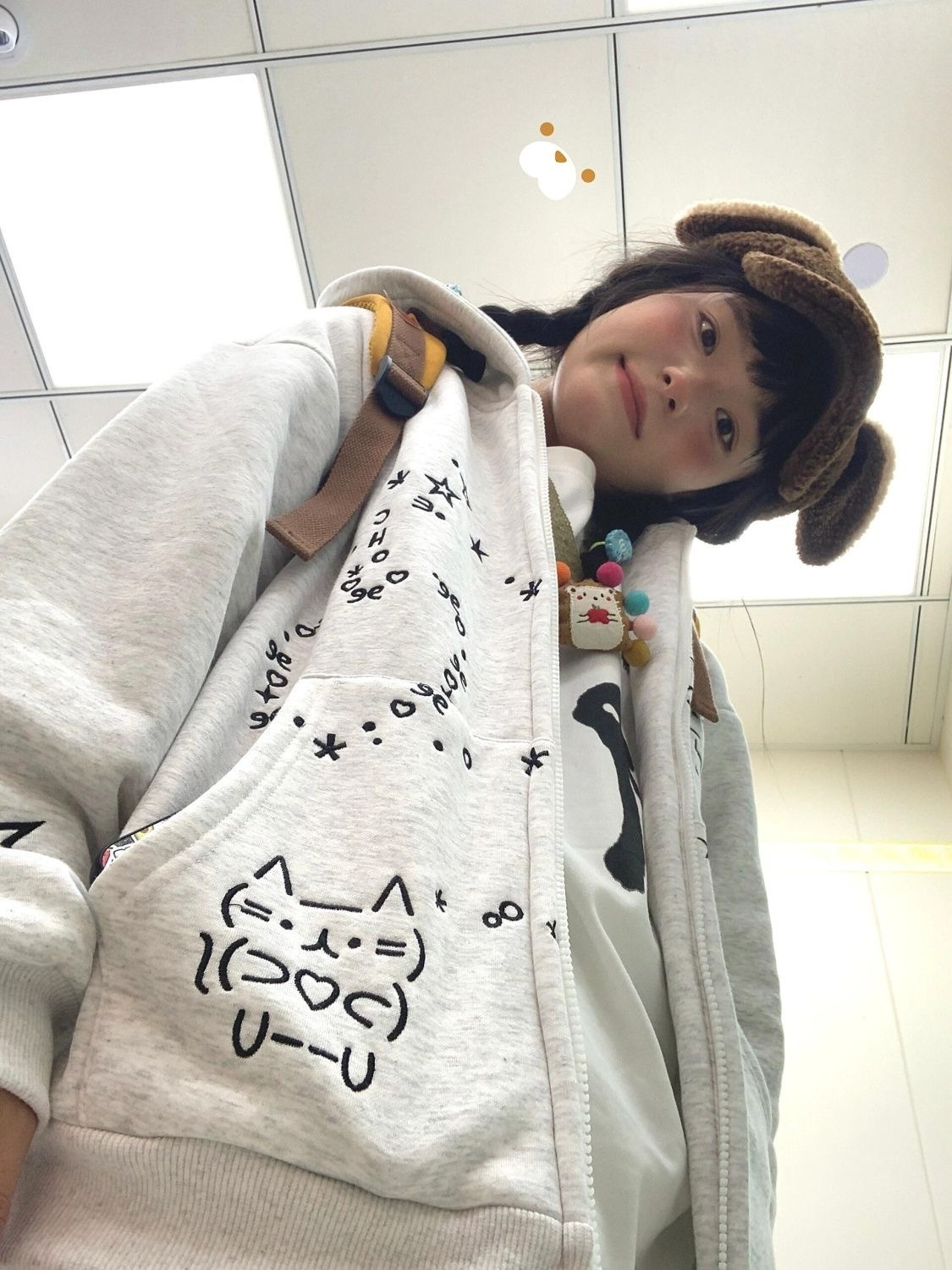 Women's Loose Casual Cute Cartoon Embroidery Pullover Hoodie